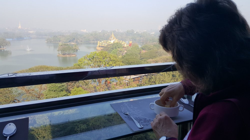 Aufwachen mit Blick auf die Swegadon Pagode und Frühstück in the roof