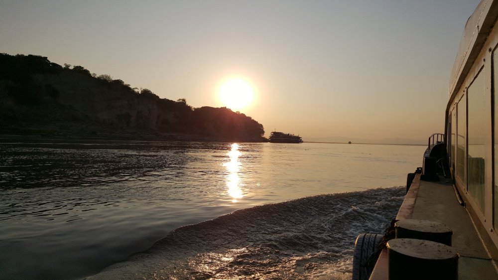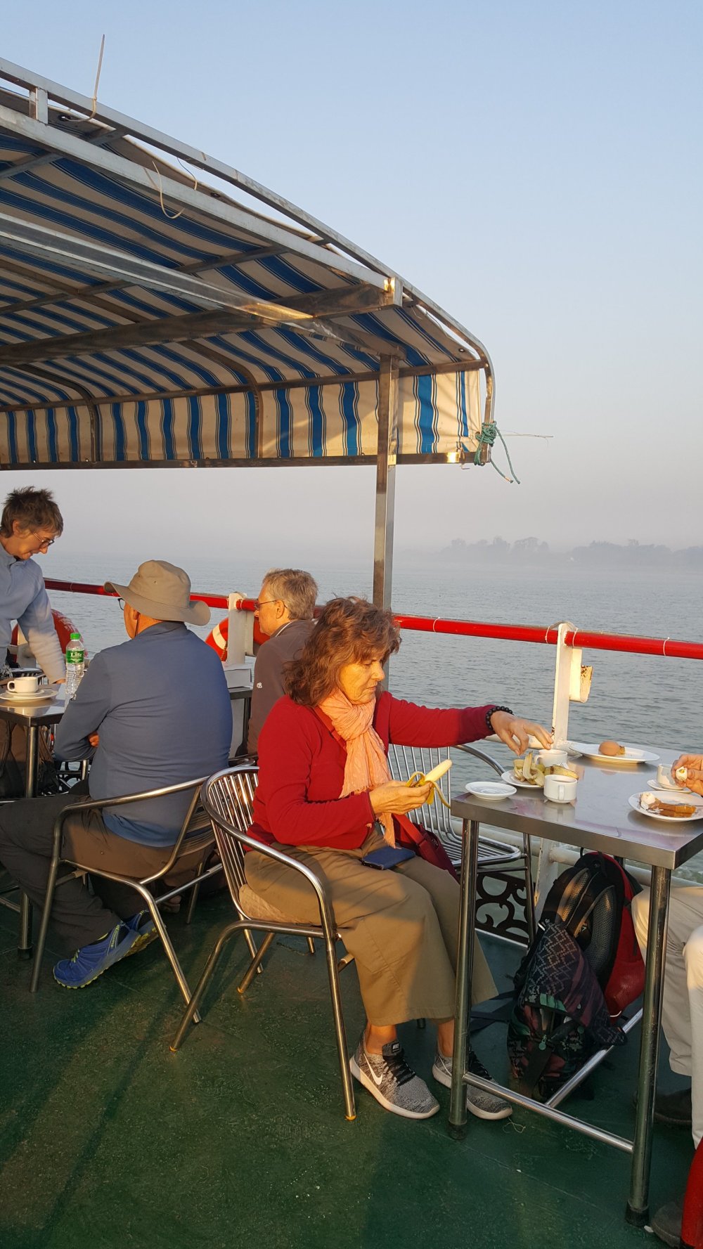 Um halb 6 Aufstehen. Um 6 Taxi, vor 7 Ablegen, um 8 Frühstück