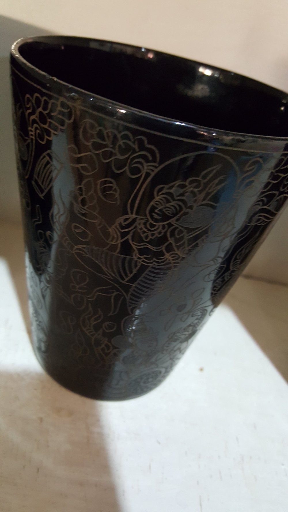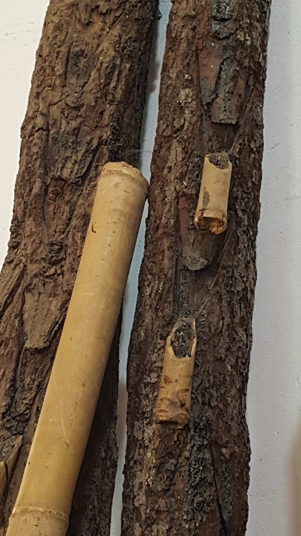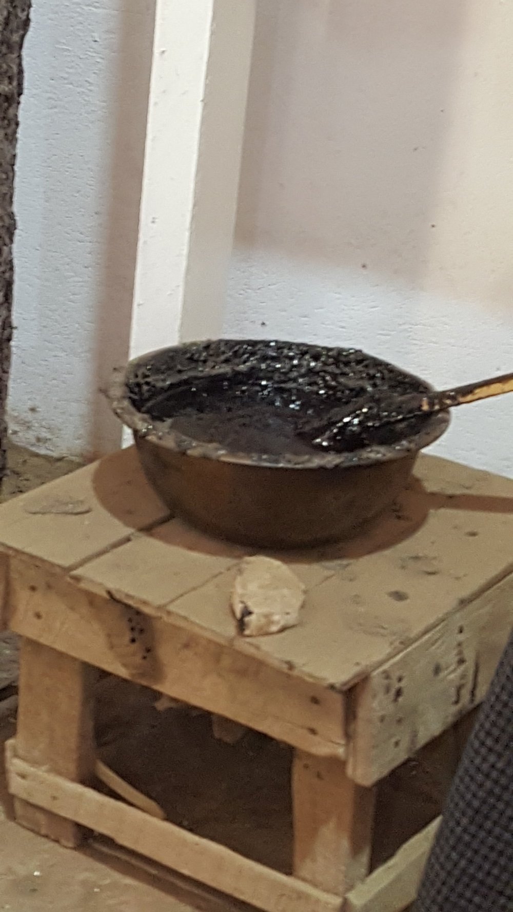 Die Gegenstände werden aus Bambusfasern geformt. Dann mit Naturharz geglättet. Graviert und wie Batik in mehreren Gängen gefärbt.
