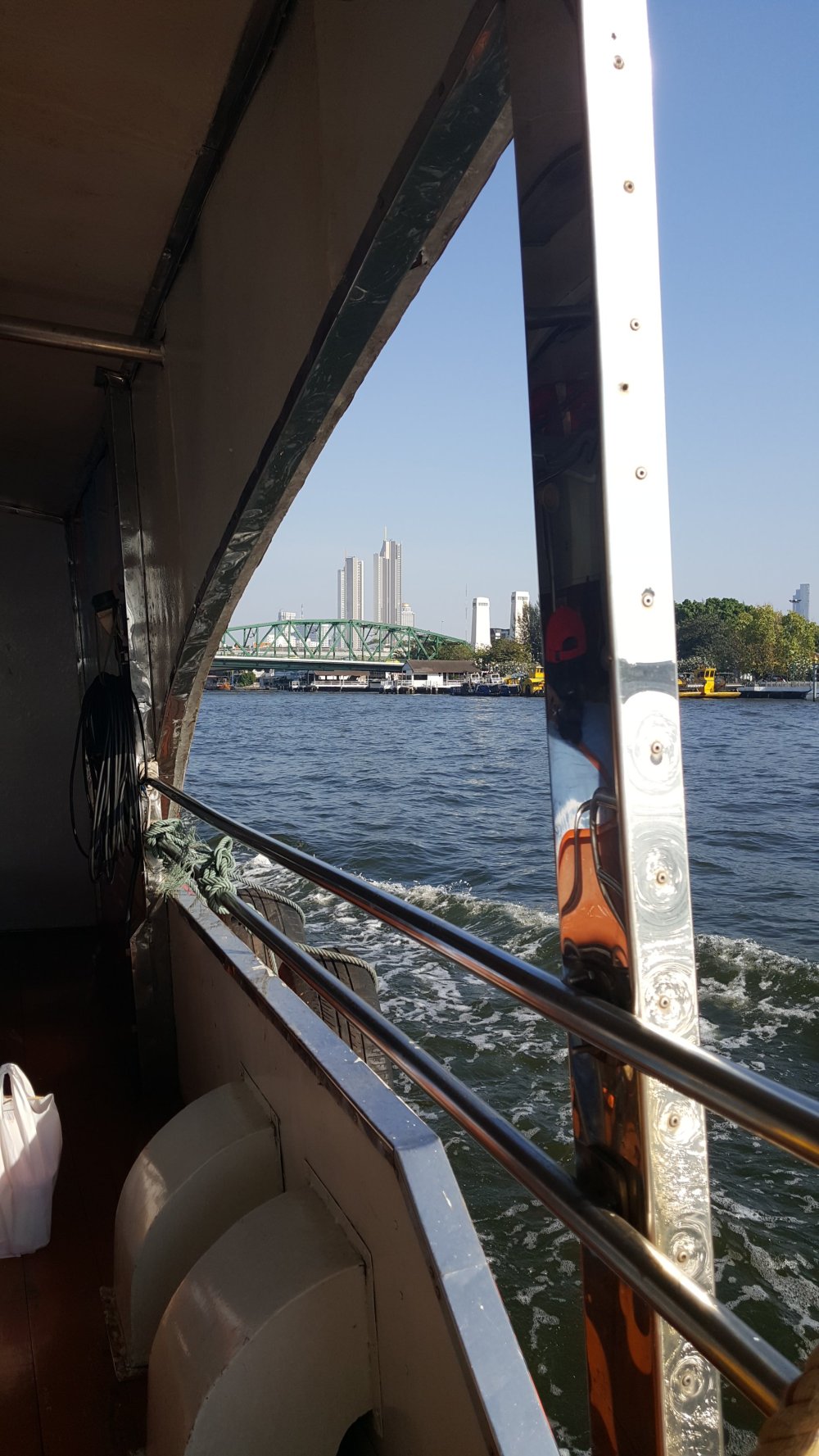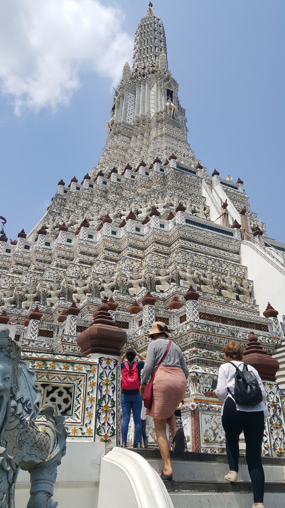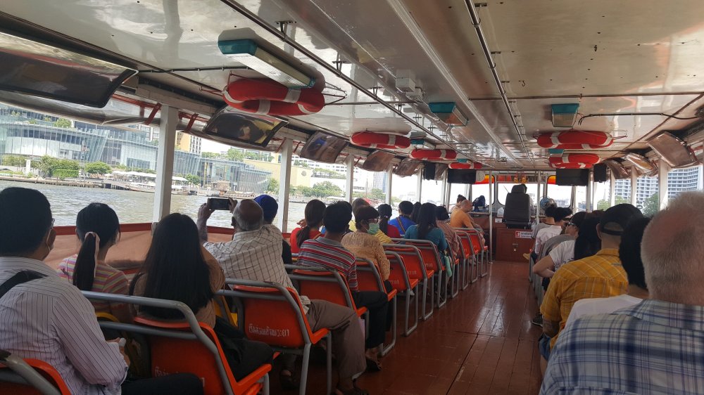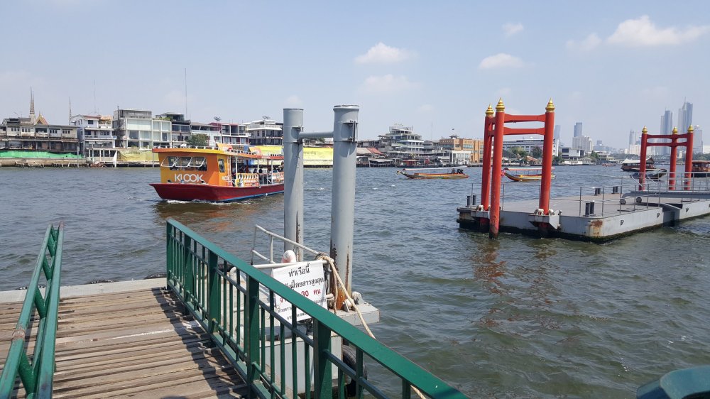 Für 40 Cent den Phraya runter zu Wat Arun, umfassend restauriert
